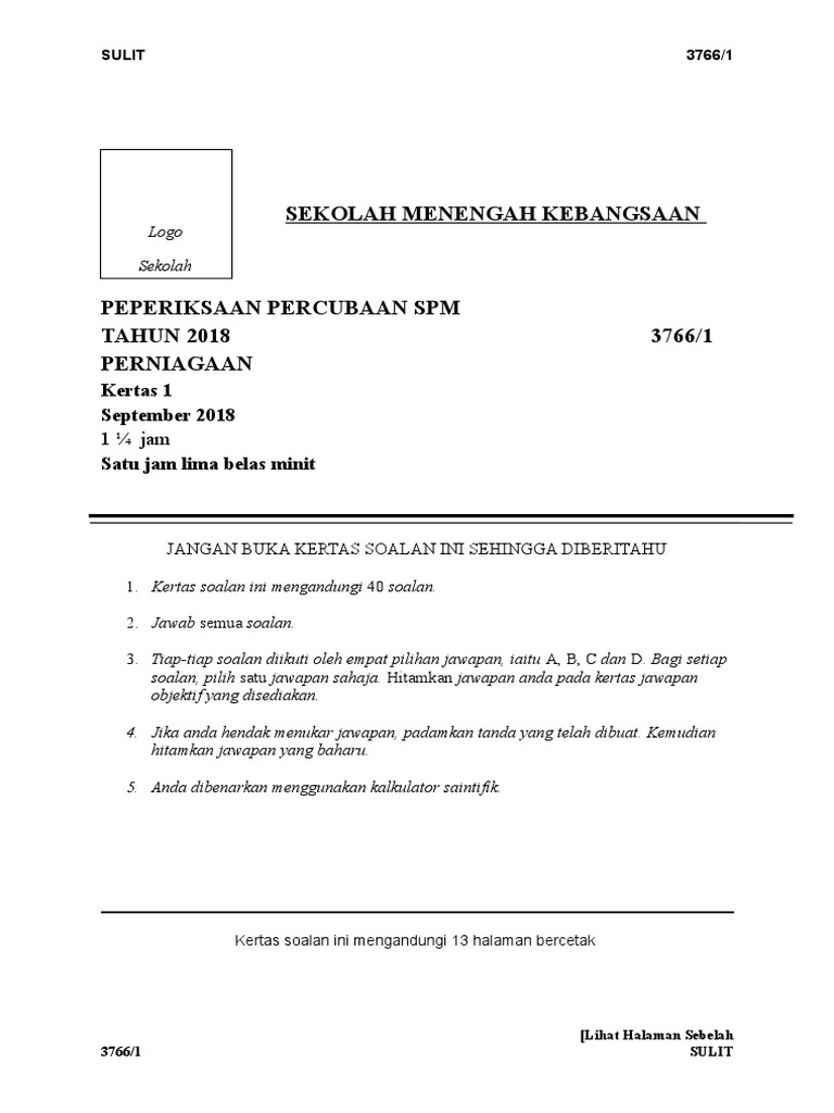 Soalan Kertas 1 Perniagaan Percubaan Spm 2018 Batu Pahat