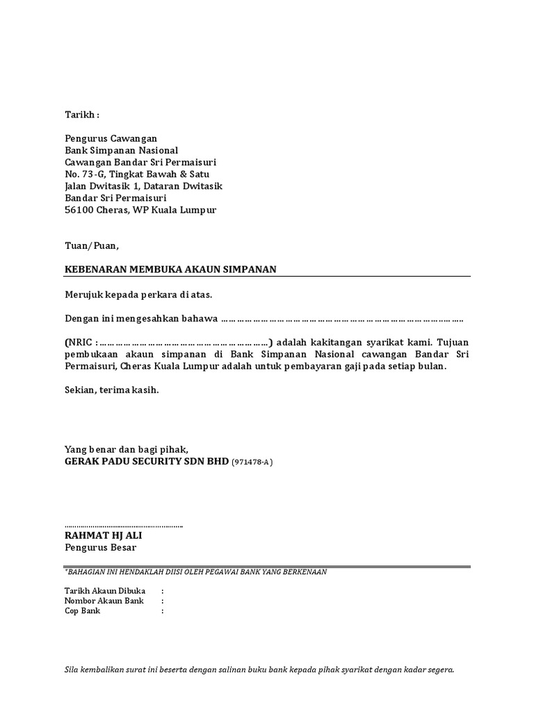 Contoh Surat Buka Akaun Simpanan Untuk Pekerja Gak Patii