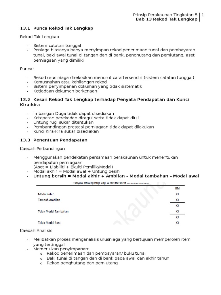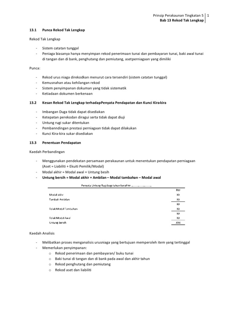 Prinsip Perakaunan Tingkatan 5 1 Bab 13 Rekod Tak Lengkap 13