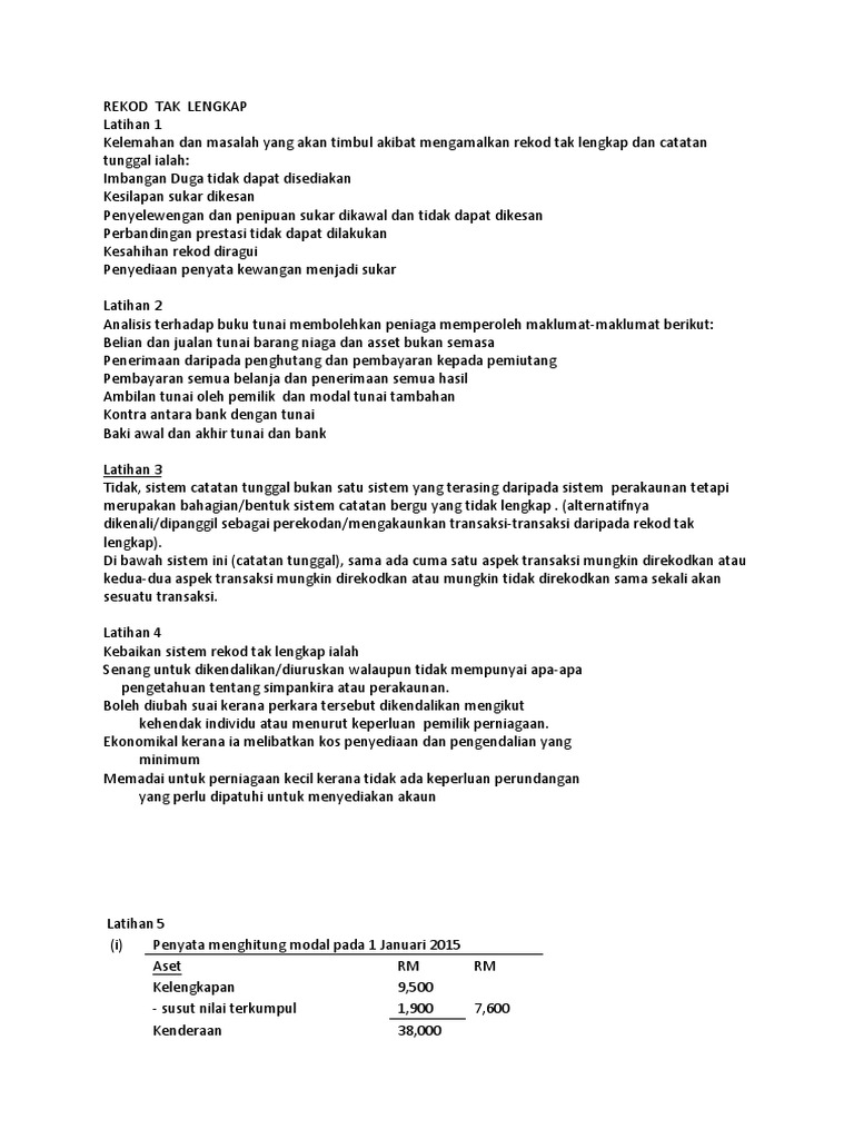LATIHAN PENGUKUHAN BUKU TEKS HALAMAN 482 SOALAN 1 REKOD TAK LENGKAP. MODUL 11 REKOD TAK LENGKAP 2 1 PENGENALAN. Apr 15 2016 9.